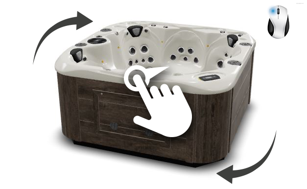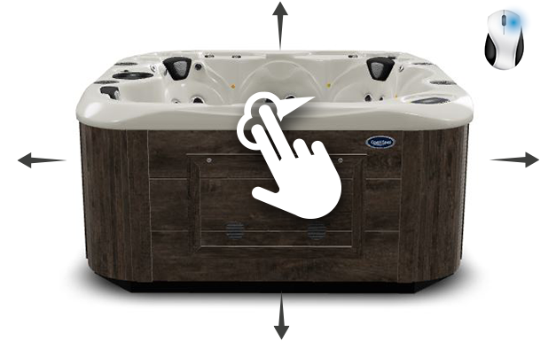Rotate the model in any direction by placing one finger on the model. While continuing to press the screen, move your finger around to rotate the spa.