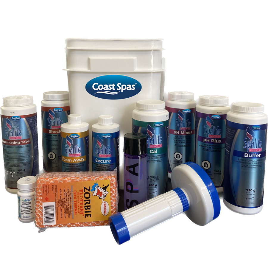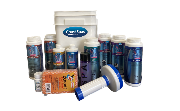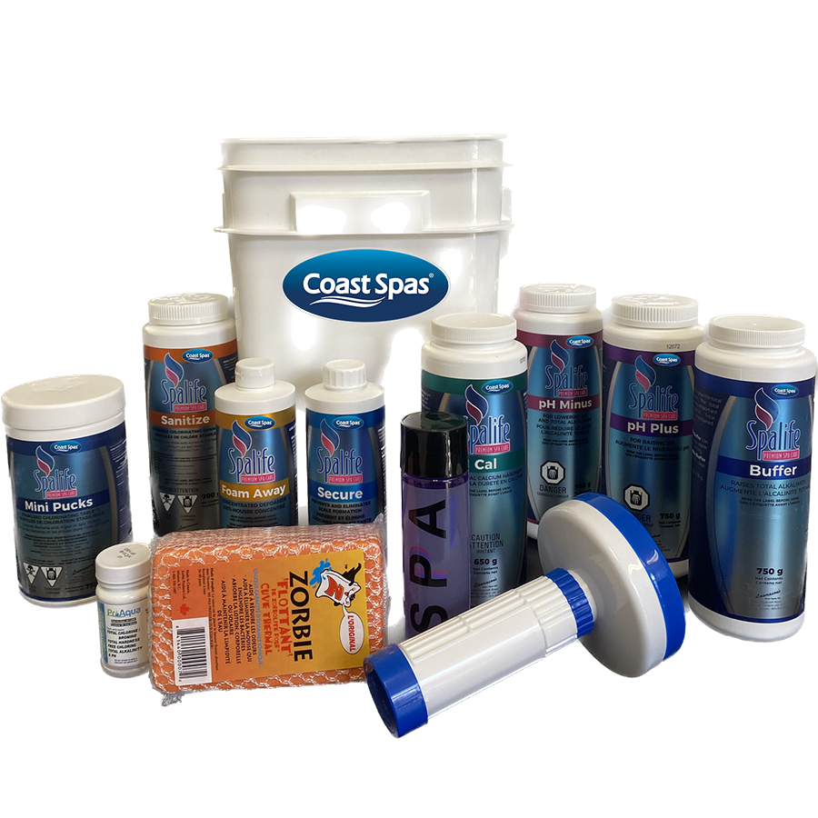 | The Coast Spas Starter Kits includes everything you need to keep your spa water clean and clear. Kit includes sanitizer, shock, and water conditioners in addition to the required balancing products to keep your water comfortable and fresh. |